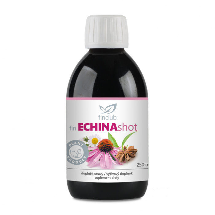Nahrungsergänzungsmittel Echinashot enthält Extrakte aus Purpur-Sonnenhut (Echinacea purpurea), Kamille (Matricaria chamomilla) und Anis (Pimpinella anisum). Gesüßt wird es mit Honig. Die enthaltenen Kräuter sind förderlich für die Atemwege, die Gesundheit der Lungen und die natürliche Abwehrkraft des Körpers.